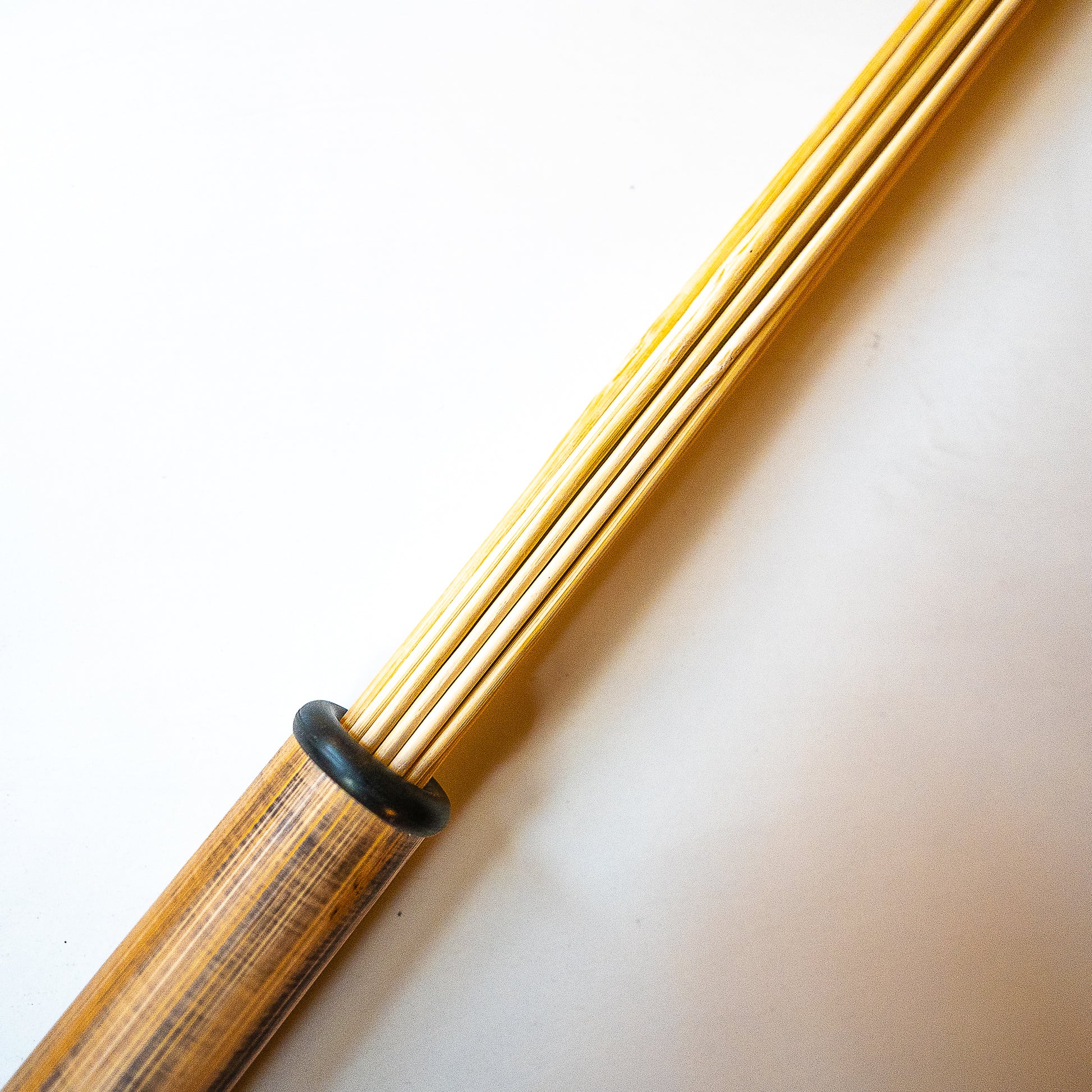 Bundle of approximately 30 bamboo rods, stained black. Approximately 56cm/22" long, of which approximately 17cm/7" is a handle made of individually dyed bamboo, finished with the finest lacquer and completed with a V2A stainless steel end cap and the new removable O-ring.